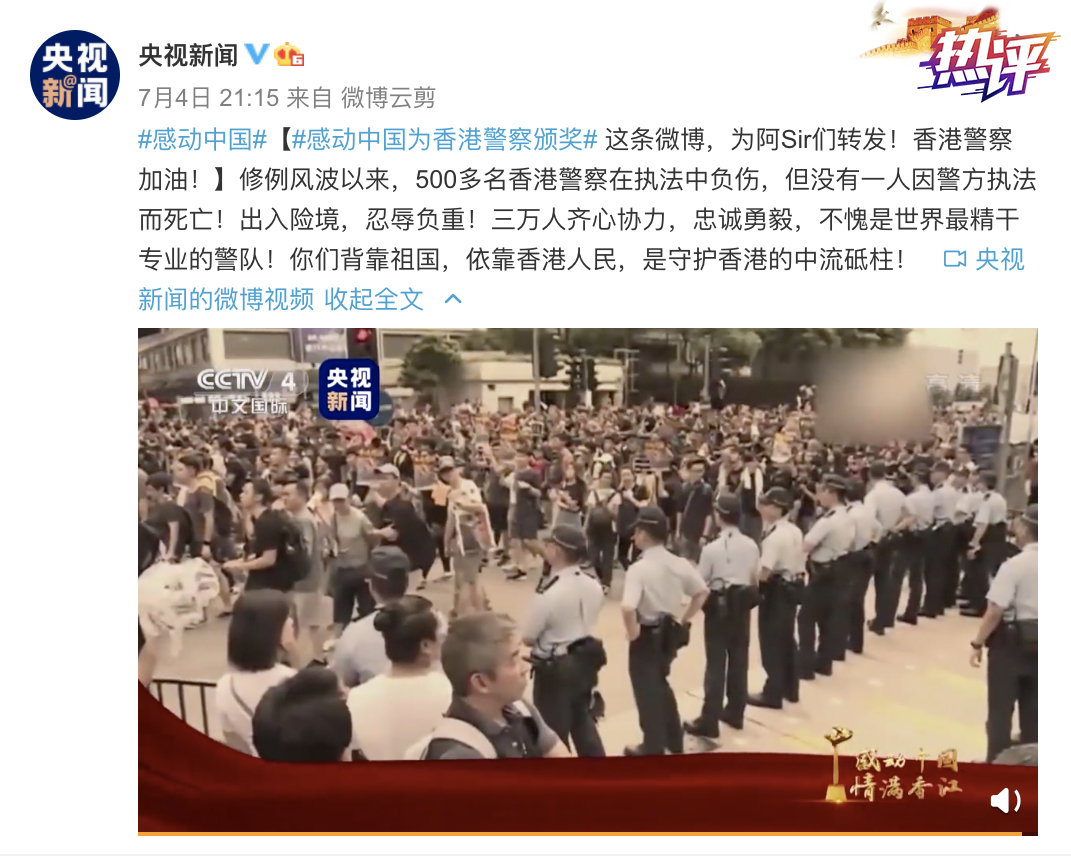感動(dòng)中國,情滿香江,致敬這群可愛又可敬的人,你們的精神與行動(dòng)終將被歷史銘記。今后,有香港國安法與香港市民站在一起,捍衛(wèi)祖國尊嚴(yán)、繼續(xù)香港繁榮、維護(hù)市民安寧……指日可待。明珠煥新彩,未來可期?。ㄎ呢w靜)